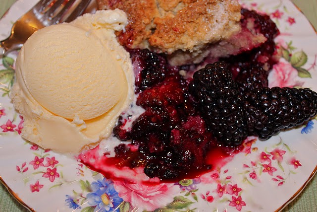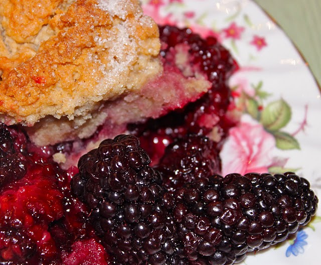 Next, brush the egg over the crust. Combine the cinnamon and sugar in a small bowl and sprinkle over the top. Bake for about 25 minutes, until the crust is golden brown and the berries are nice and bubbly. Allow to cool for 10 minutes before serving. Serve with a vanilla bean ice cream, while the cobbler is still warm.