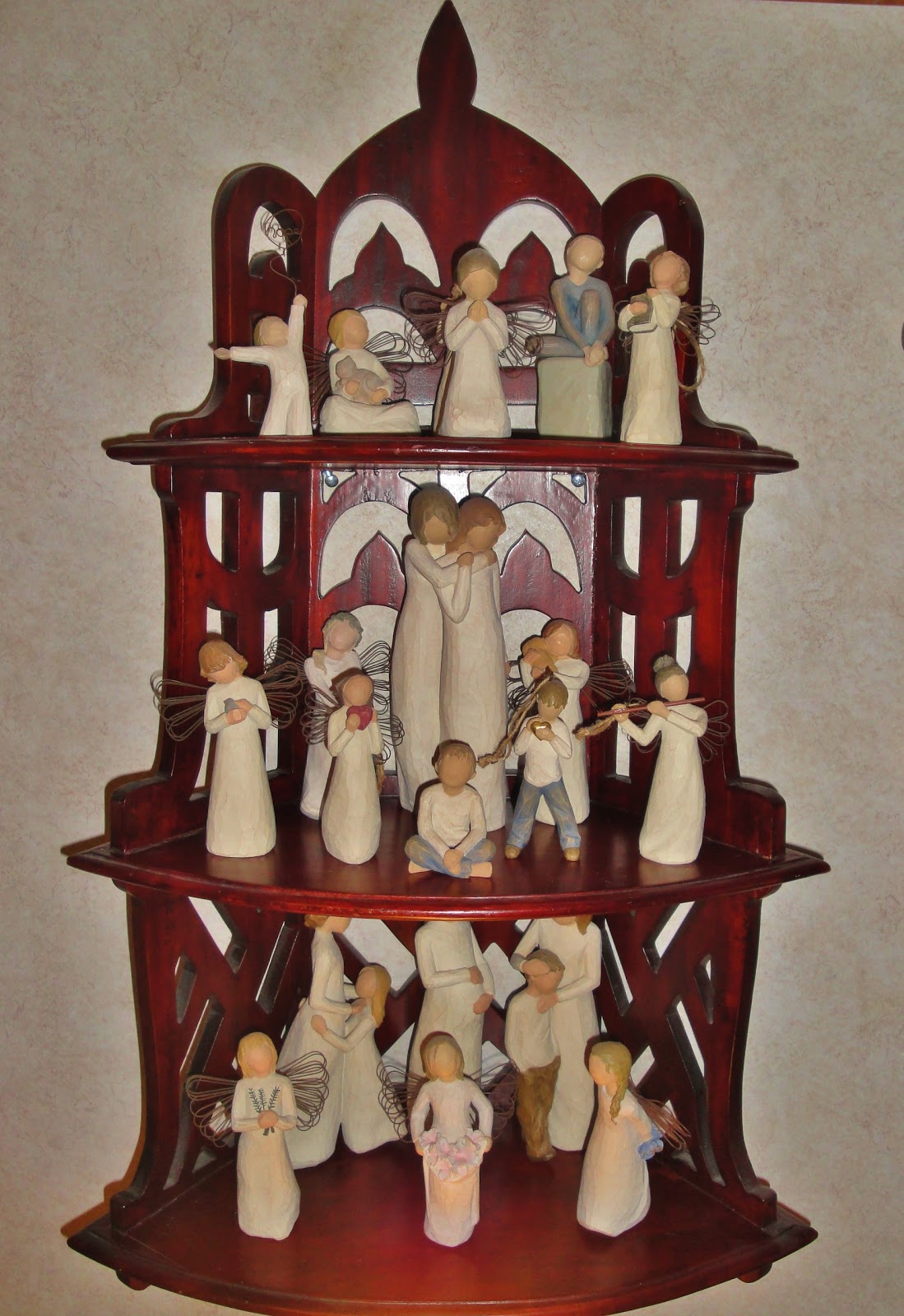 The original inspiration for Willow Tree still holds true today: They help us feel close to others, heal wounds, or treasure relationships. These art forms beautifully express love, closeness, healing, courage, hope - all the emotions of a life well lived. The name Willow Tree was chosen to symbolize that which is gestural and beckoning. The figures are columnar in design, like a tree, and often carry natural objects or animals as metaphors for human virtues or qualities - rosemary for remembrance, a bird for healing, flowers for beauty. The sculptures are rendered so as to suggest elegance, simplicity, peace and serenity. Forms reveal their expressions through body gestures only - a tilt of the head, placement of the hands, a turn of the body. Emotions are left to the viewer to discern, which makes them personal and powerful. Had I not taken up playing the flute, I may have never known the 'sweetness' of the Willow Tree line. I purchased a rosewood shelf to house and display my collection of these figures. They are as beautiful today as the day I received my first one - of a young girl playing the flute.