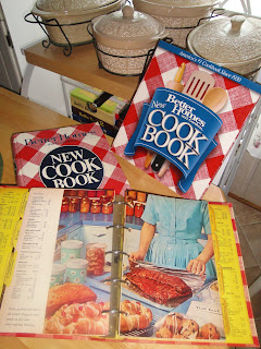 In 2008 we were touring the old Tommy Webb home, they were holding an Estate Sale, and in the kitchen sat an exact replica of the "Better Homes and Gardens New Cookbook". Copyright 1953, 1962 edition. We purchased it for $3.00! What a sweet fine, a treasure of sorts. Well, I now own that treasure and use the recipes to this day. The recipes my Grandmother used for her family. The recipes my mother used with her family. And now, I use them in my meal planning. Last week, I used the Tuna Casserole recipe, and it was delicious! This cookbook with its pages yellowed and stained, has found a place in my heart and in my home.