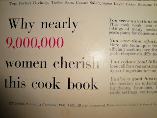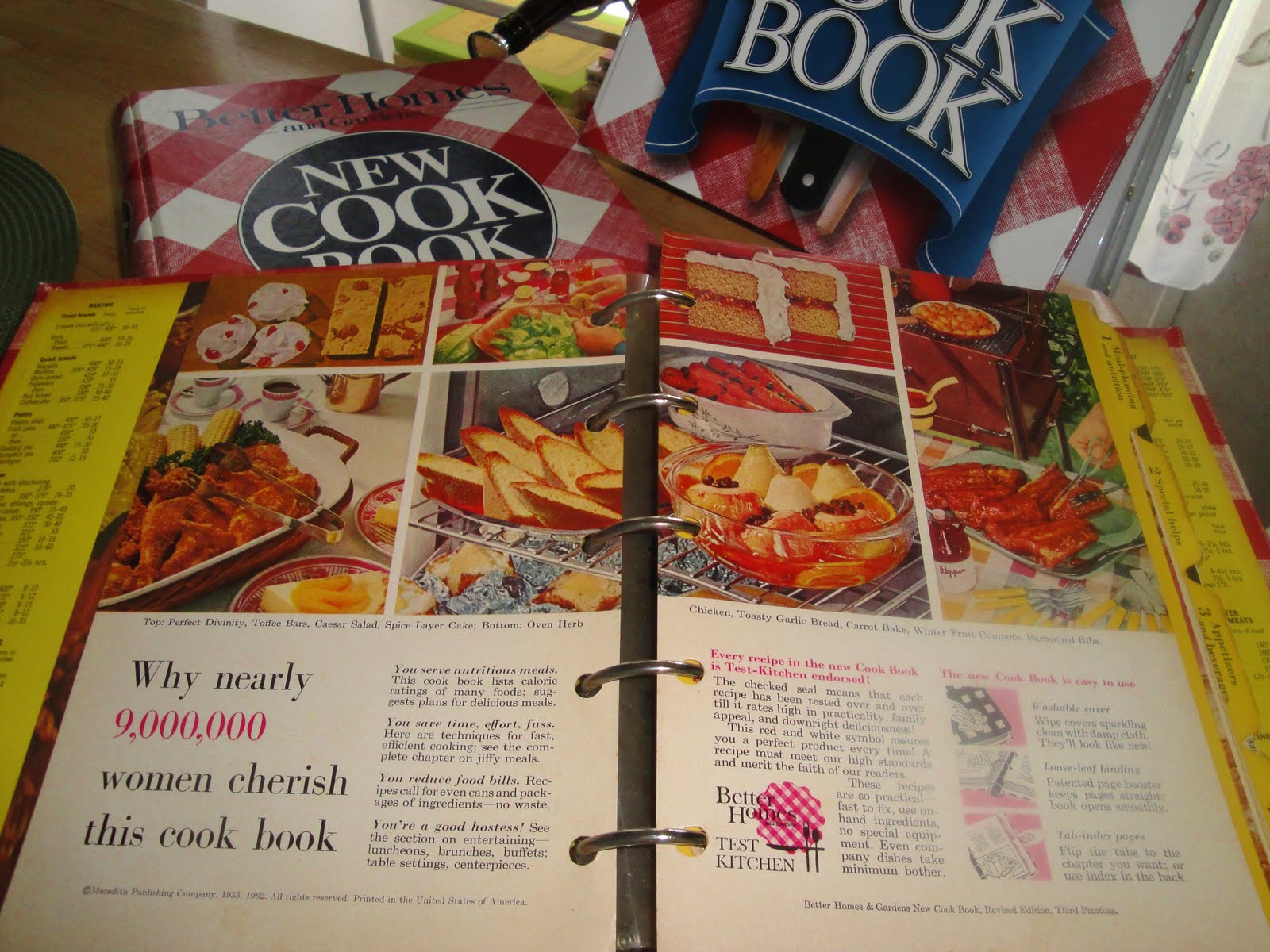 "Better Homes and Gardens New Cookbook", Copyright 1953, 1962 edition. A classic cookbook for anyone who loves to cook and loves to eat. Lots of great old-fashioned recipes and mid-century meals. Lots of photos and cute little 50's and 60's style drawings.