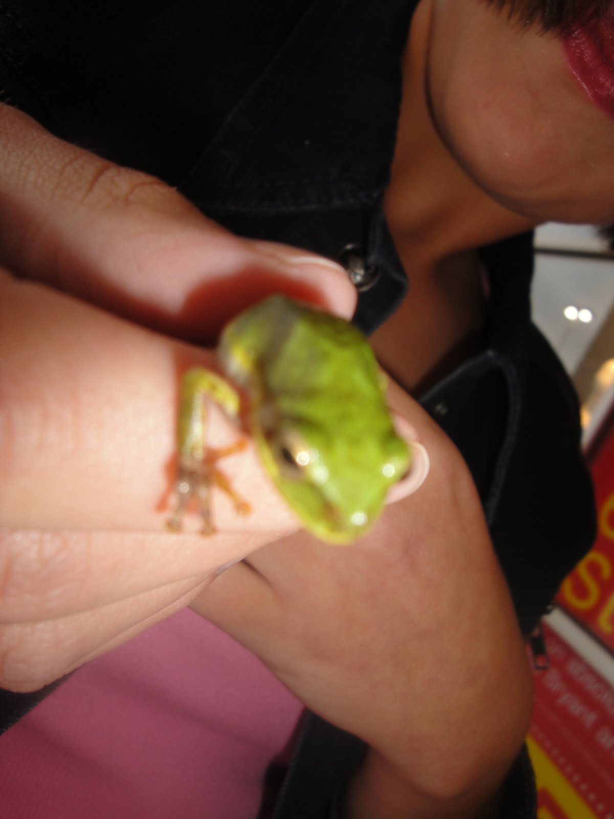 I met Marie who was wearing a 'frog; shirt. I shared my frog story with her. |