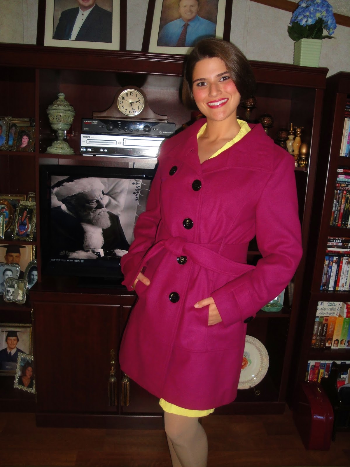 I am wearing my coat to make it seem like it is cold here. It is very warm.