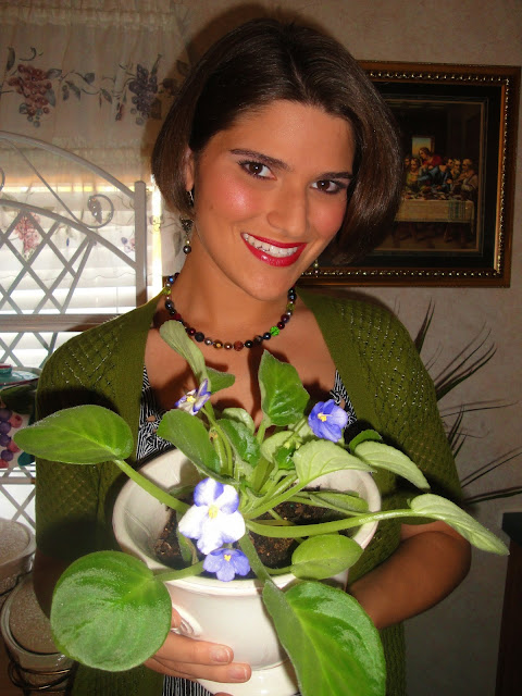 Violets in November. What a surprise that my African Violet is blooming during the month of November. I replanted this violet after it was dying an untimely time. I had this violet for many many years and one day I noticed it was all but dead. It made me sad to think I may have contributed to it's slow demise, because of bad lighting and/or over watering. After I purchased my Baker's Rack, I placed the violet on the top shelf and the sun and the warmth from the kitchen window breathed new life into this violet. I saw it budding this past week and waited patiently for the white and blueish-purple blooms to open, and the wait was well worth it!