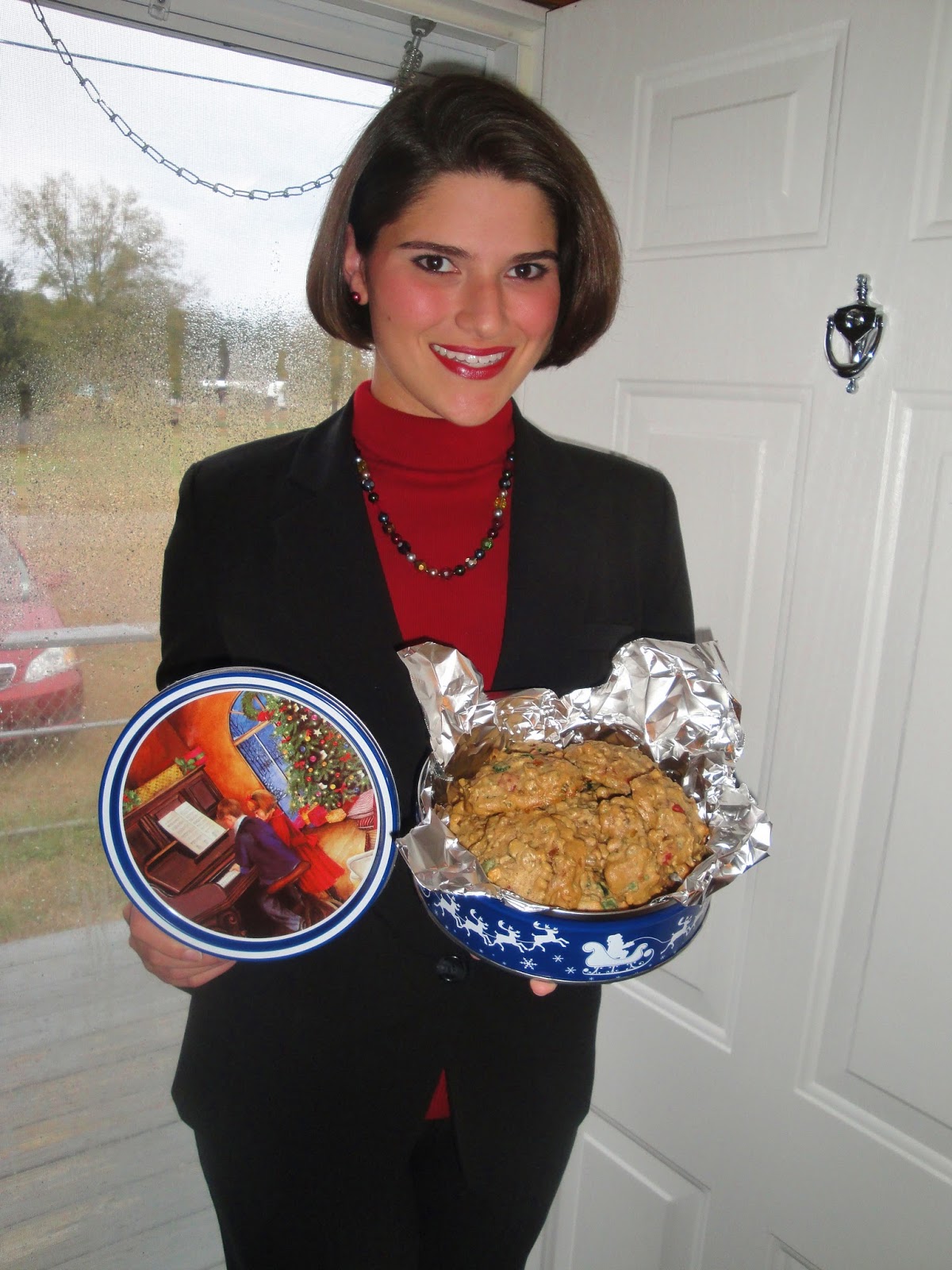I filled several Christmas themed tins with my Fruitcake Cookies as gifts.